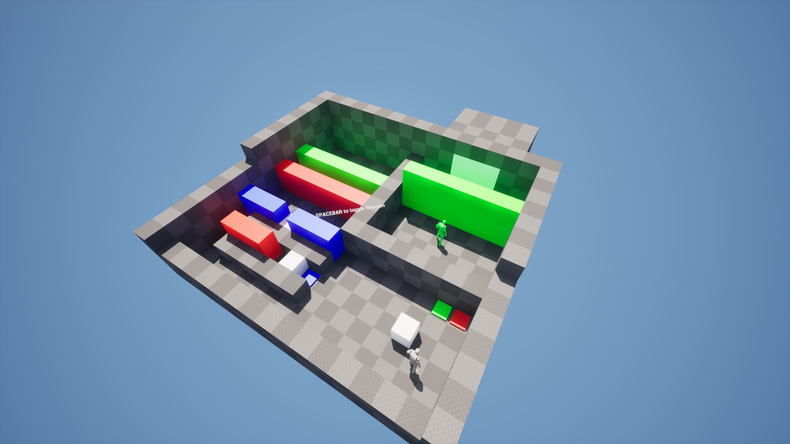 Despite that, I still had fun experimenting with various systems: pushing cubes, triggering pressure plates, handling player movement within the environment, and dealing with collisions between players, projectiles, and shields while trying to make engaging puzzles.